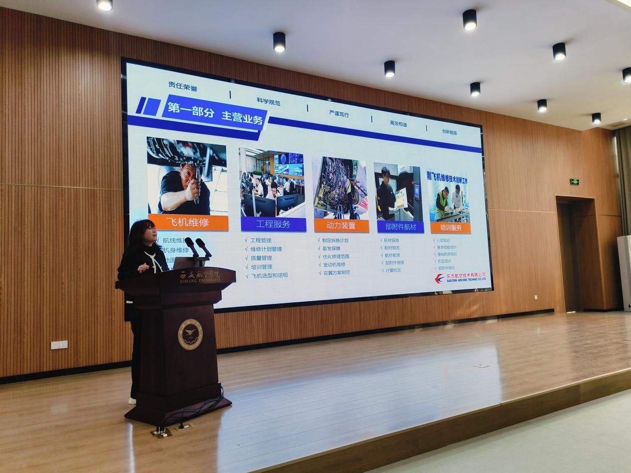 作为西北地区航空维修领域的领军企业,东航技术西安分公司是西安咸阳机场最大驻场单位,也是具备 a320 系列飞机全深度维修能力的核心机构,同时承担着 c919 国产大飞机 “沪陕快线” 的运行保障重任。宣讲会上,公司人力资源部负责人通过ppt 演示,全面介绍了公司发展历程、核心业务布局、od体育官方平台入口的文化及人才培养体系。重点解读了本次招聘的飞机维修工程师岗位需求,详细说明任职要求、薪酬福利及职业晋升路径,并特别强调公司为应届生打造的 “定制化培训计划”,涵盖 ccar-147 部机型理论培训、模拟机实操训练等专业赋能环节,让在场学生对职业发展前景有了清晰认知。