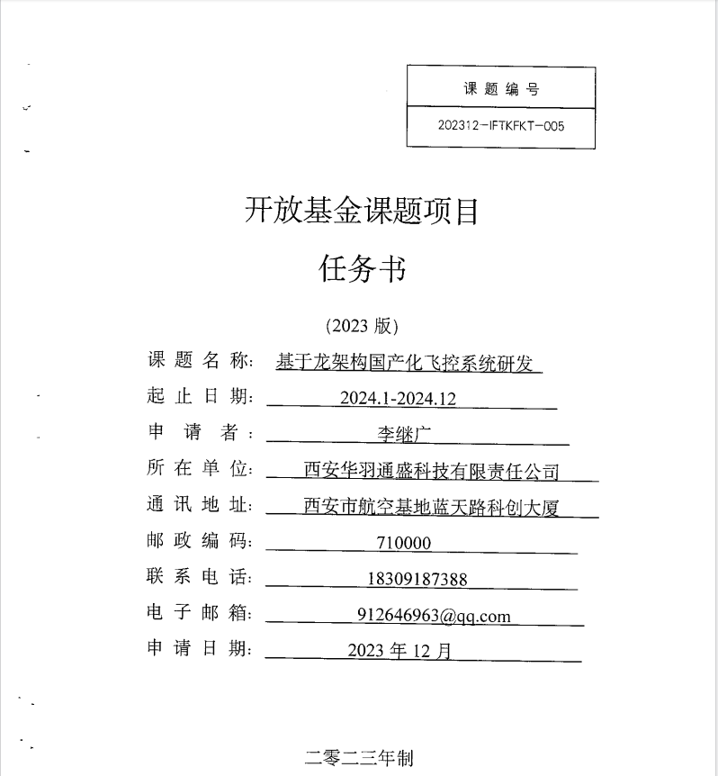 经过三年多的联合研发,团队结合龙芯处理器龙架构指令集、以及飞控机操纵系统所要求的调度、运行、接口、实时性、稳定性等具体要求,在 linux-5.10.0内核的基础上,进行实时化开发适配,完成了基于linux系统的实时操作系统开发。2023年,团队与广东龙芯中科电子科技有限公司合作,在其智联2k0500先锋核心板的基础上,结合飞控机环境适应性要求、可靠性要求,定制开发了专用核心板。在该核心板的基础上,同年开发完成了第二代飞控机设计,验证龙架构环境下飞控软件编译生成技术。2023年年底,团队完成了龙架构环境下飞控软件编译生成技术,以及各种硬件接口交付稳定性问题。2023年,该项目获得西北工业大学国防重点实验室开发基金资助。
