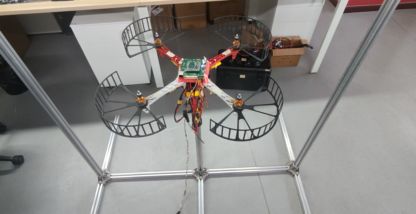 2025年,项目进入装机飞行验证阶段,三方技术人员在龙芯中科(西安)科技有限公司尽量两个月的集中联合调试,集中解决全系统信息采集、控制指令输出、散热、震动等问题,发现并解决全系统存在的问题,并进行台架实验室,为脱保飞行做准备。4月19日,准备工作全面完成,装备该飞控机的四旋翼无人机在陕西华兴通盛航空科技有限公司大厅完成首次全流程飞行试验。
