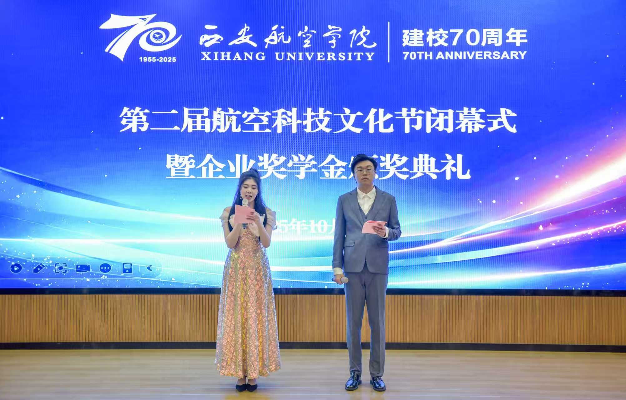 2025年10月10日晚19:00在阎良校区阶梯一报告厅,飞行器学院(低空技术与工程学院)第二届航空科技文化节闭幕式暨企业奖学金颁奖典礼在此隆重举行,为本届以“创新引领未来·科技逐梦蓝天”为主题的科技盛宴谱写了辉煌的终章。